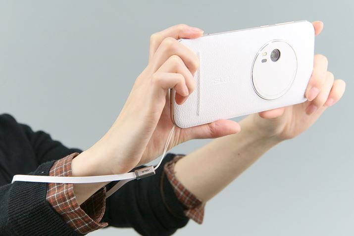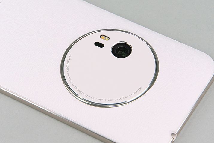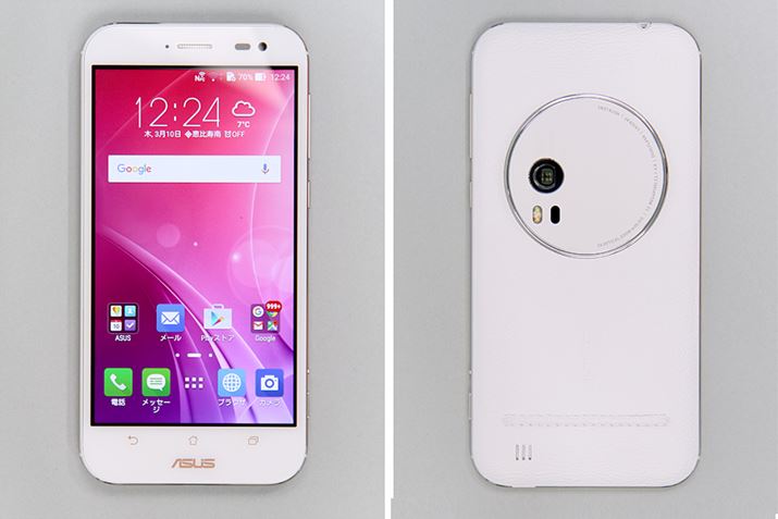 光学3倍ズーム対応のカメラを搭載したZenFone Zoom。SIMフリーのAndroidスマホで、通信会社を自由に選べる。今回は最上位モデルの「ZX551ML-WH128S4」(プレミアムレザーケースモデルの白)を試用した。価格.com最安価格は74,293円(2016年3月10日時点)