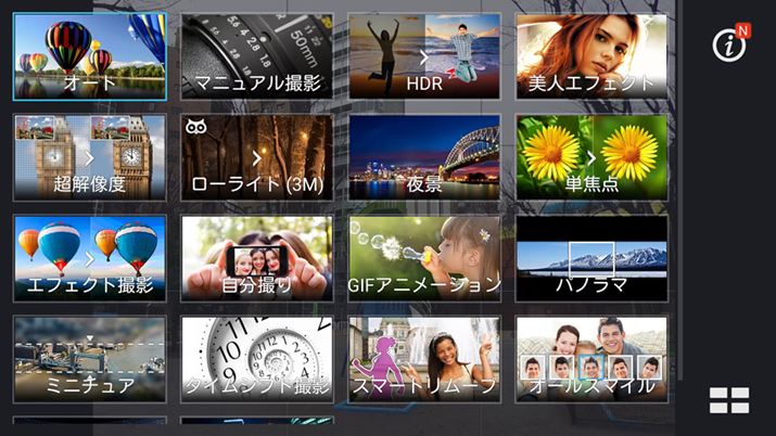 豊富な撮影モードを用意。暗い場所でも明るく撮影できるローライトなど、ZenFoneシリーズではおなじみの機能がしっかりと搭載されている