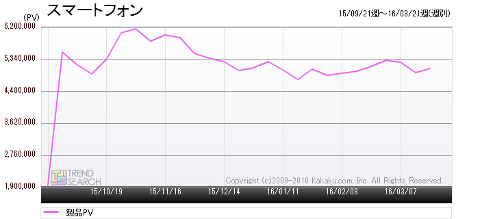 図1:「スマートフォン」カテゴリーのアクセス数推移(過去6か月)