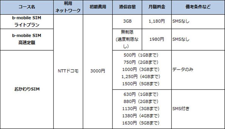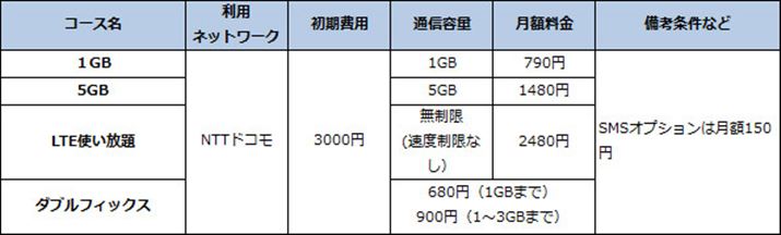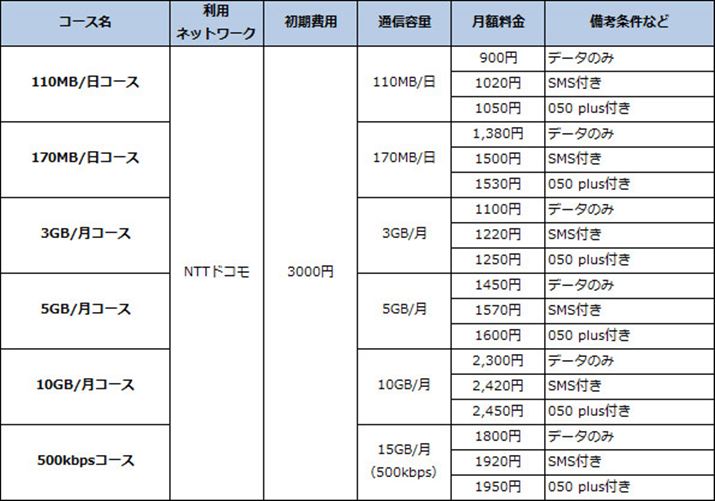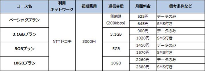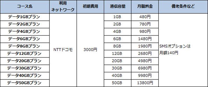 なお、SMS機能の有無が選ぶことができる、SMS付きSIMカードは、月額プラス120円の料金がかかる。