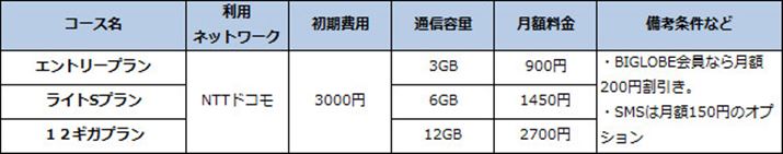 このほか、BIGLOBEの既存会員向けの特典として各プランが月額200円の割引きが適用される。SMSはいずれも月額120円のオプションとなっている。