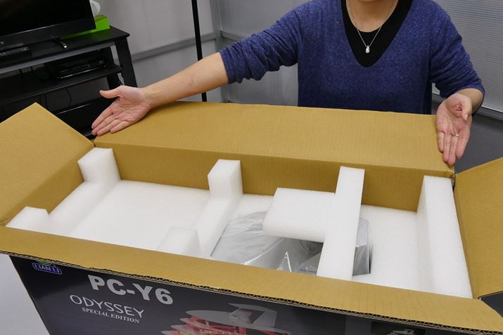 フォルムから複雑な組み立て作業を想像していたが、箱を開けてみるとほぼ完成状態の本体が入っていた。緩衝材の量も多いので手持ちでも安心(?)