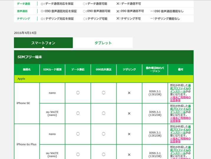 IIJmioの動作確認済み端末のページ。同社はブログを通じて積極的に対応状況を発信している