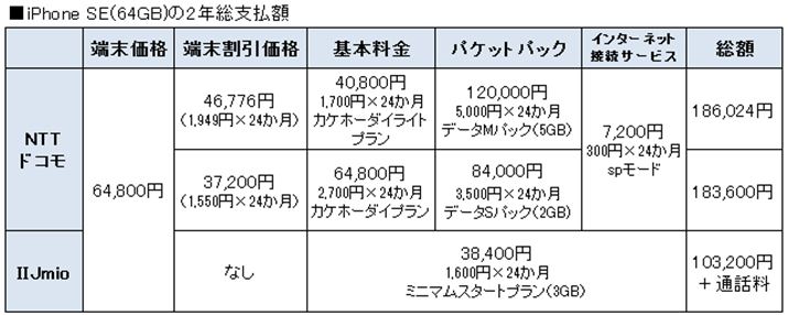 金額はすべて税別(端末割引価格は税別に換算)。価格は2016年4月18日時点の情報です。NTTドコモの金額は、機種変更時、2年契約時、各種割引適用前の価格です。