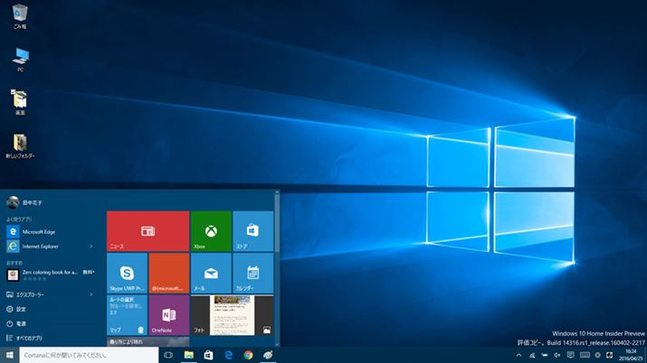 デスクトップ画面やウインドウ表示が使える普通のWindows 10の状態で、スタートメニューをスタート画面風にしてみよう。これは「設定」の「個人用設定」から設定する。