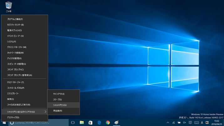 スタートボタンを右クリックすると、メニューが表示される。ここから呼び出すほうが楽な機能がいくつもあるので上手く活用したい