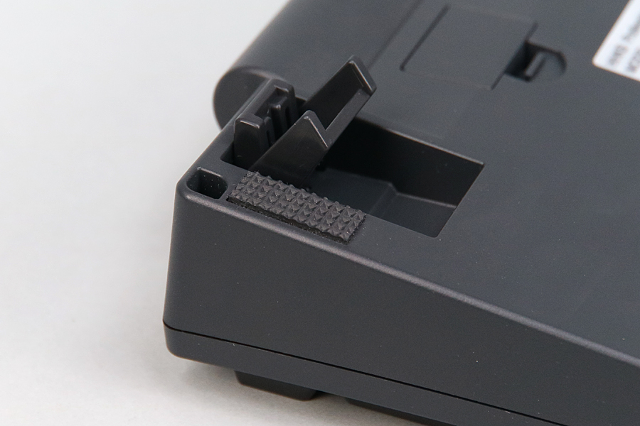 使っていて少し気になったのが省電力機能。5分ほど使用していないとスタンバイ状態になり、キーを押すと復帰する。これは問題ないが、使用していない時間が30分ほど続くと、電源がオフになり、機器との接続も切れてしまう。こうなると、背面の電源スイッチを押さないと復帰せず、復帰するまでに少し待たされる。底面のDIPスイッチでこの自動電源オフを無効化することもできるが、その場合は駆動時間が短くなってしまう。どちらがいいかは使い方次第だろうが、わずらわしく感じる人もいるだろう。