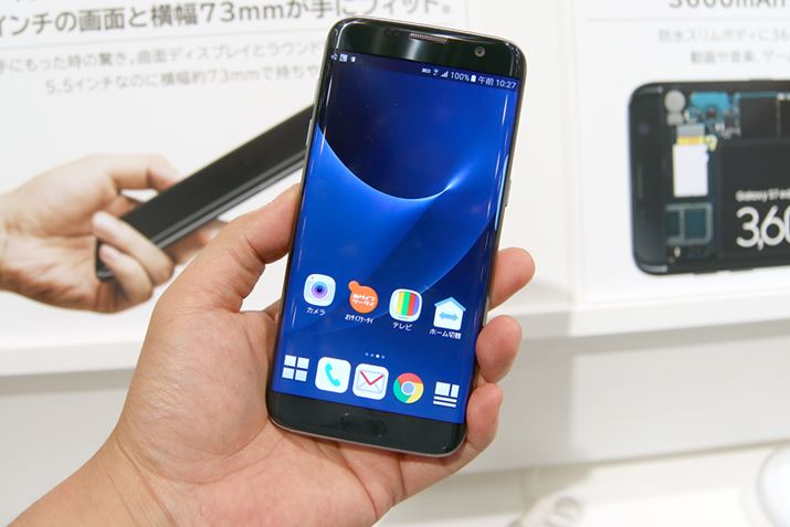 ディスプレイの両端がカーブした「デュアルエッジスクリーン」が特徴的なハイスペックなスマートフォン。ディスプレイは、前モデルの「Galaxy S6 edge」(約5.1インチ)より大きな約5.5インチ(1440×2560)の有機ELディスプレイを採用する。大画面モデルでありながら、厚さ約7.7mm、横幅73mmというスリムで持ちやすいサイズ感を実現しているのがポイントだ。