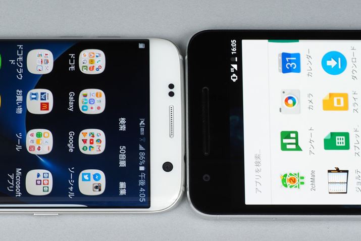 そのいっぽうで、ボディサイズを見ると、約73(幅)×151(高さ)×7.7(厚さ)mm、重量は約158gとなっており、5.5インチ級スマートフォンとしては異例のコンパクトさである。本機と同じ5.5インチのディスプレイを備えたスマートフォンとして、「Xperia Z5 Premium」や「isai vivid」があるが、いずれも横幅は約76mとなっており、それらと比較すると本機のスリムさがよく理解できるだろう。さらに、持ちやすさにもすぐれる。大画面だがコンパクトという、相反する要素を両立させたのがGalaxy S7 edgeの大きな特徴となっている。