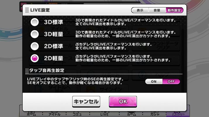 アイドルマスター シンデレラガールズ スターライトステージのLIVE設定では「2D軽量」と判定された。アプリが新しいCPUを正しく認識できていないためだと思われる