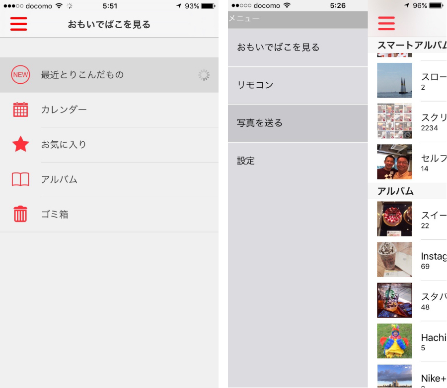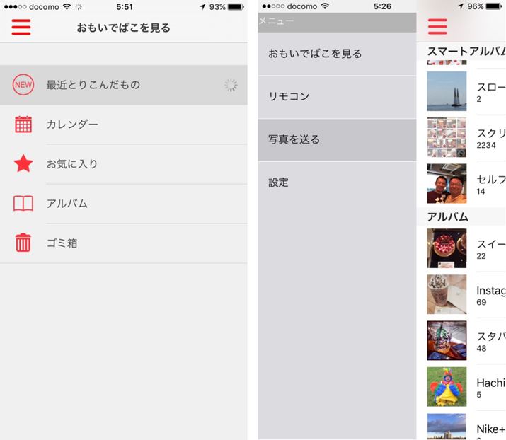 iPhone/iPadから「おもいでばこ」に写真を送信するには、専用アプリから行う。アプリでは、アップした写真や動画の閲覧も可能