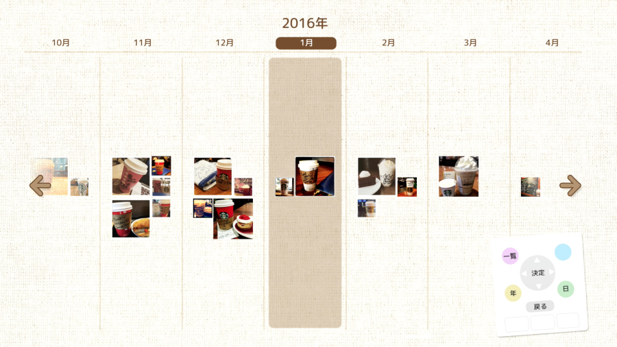 写真や動画を撮った日付でカレンダーにしてくれる機能もあり、いつ頃の想い出かを振り替えるのに便利
