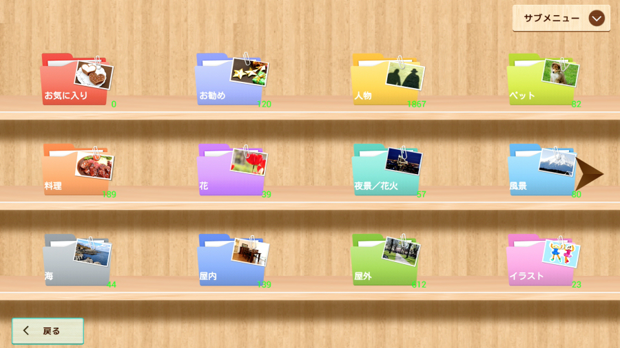 スマホの画面には、Wonder Photo Box」をテレビで映したものと同じものが表示される。テレビを付けなくてもスマホやタブレットだけでも写真の閲覧・整理が可能