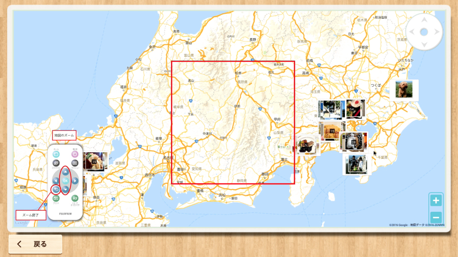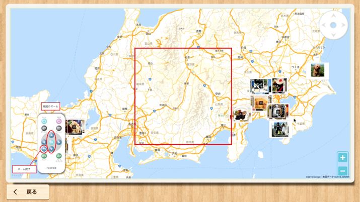 写真のGPS情報をもとに、撮った撮影位置で地図上に写真を表示可能。地図を拡大すれば、より詳細な位置が表示される