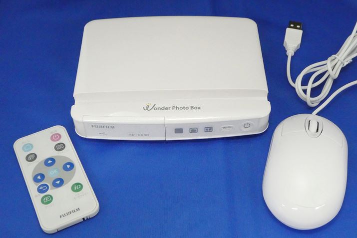 本体サイズは、約154(幅)×118(奥行)×37(高さ)mm。基本、付属のリモコンで操作を行う。お弁当箱のような形のこの箱の中に想い出がギッシリと詰めこむことができる