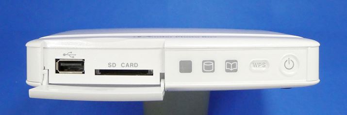 本体前面にはUSB端子やメモリーカードスロットを配置。メモリーカードを挿して「とりこみ」ボタンを押すだけで写真や動画を本体に取り込まれる