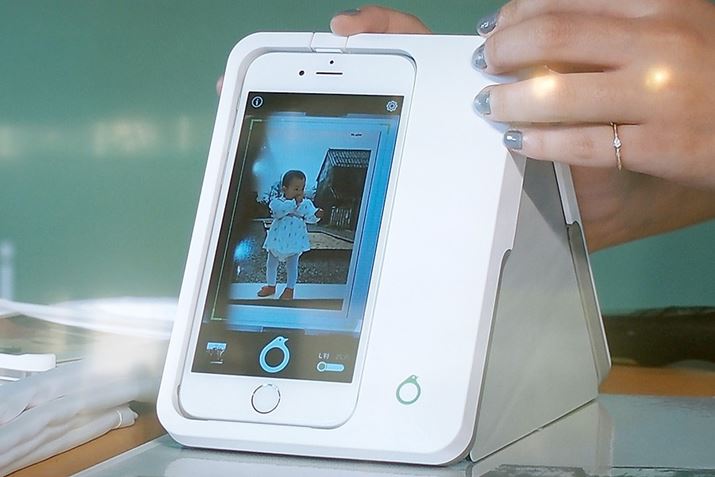 写真の上にのせてつかうiPhone専用のスキャナー「Omoidori」