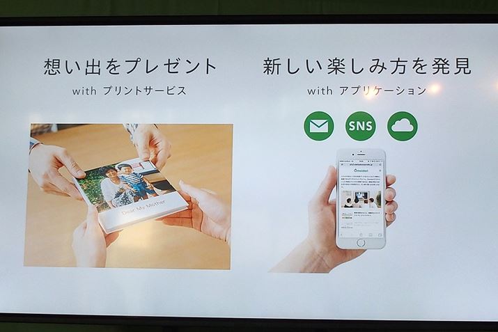 Omoidori専用のアプリでは、スキャンした画像でフォトブックのレイアウトを作ることもでき、アプリ内でフォトブックや写真プリントの注文も行えます(プリントは、富士フイルムの印刷工場で作成され、自宅に届きます)。また、アプリ内から画像を直接メールしたり、SNSへシェアしたり、クラウドサービスをつかって画像を共有することも可能です。