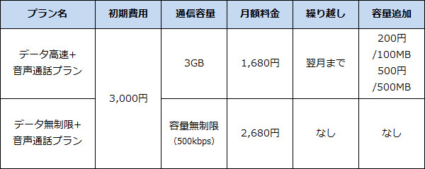 もうひとつの「b-mobile SIM高速定額 音声付」は、月額2,780円でデータ通信の容量と通信速度が無制限というもの。ヘビーユーザーにとってはかなり魅力的なプランだ。