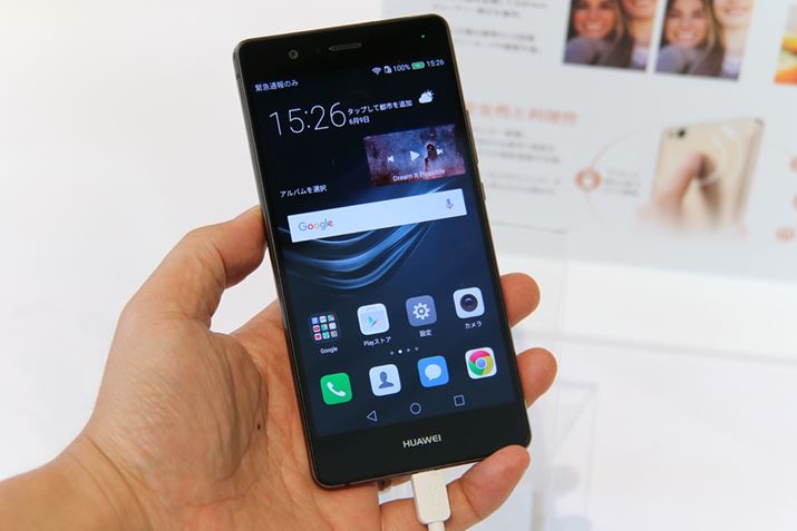 ライカと共同開発したダブルレンズを搭載するHUAWEI P9。約5.2インチのフルHD液晶やHiSilicon製のオクタコアCPUなどを搭載する。市場想定価格は59,800円(税別)
