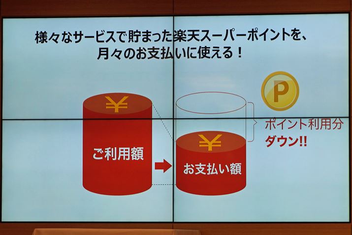 今回の発表会では、新型スマートフォンと同時に、楽天モバイルの支払いの仕組みの変更点や新サービスも発表された。まずは毎月の支払いに「楽天スーパーポイント」を使えるようになったことだ。これは、あらかじめ指定したポイント数を支払いに当てることができるというもので、7月1日よりサービスが開始される。