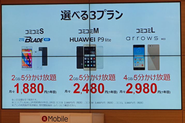 「arrows M03」、「HUAWEI P9 Lite」、「ZTE BLADE E01」を対象にした、割引きプラン「コミコミプラン」も開始される