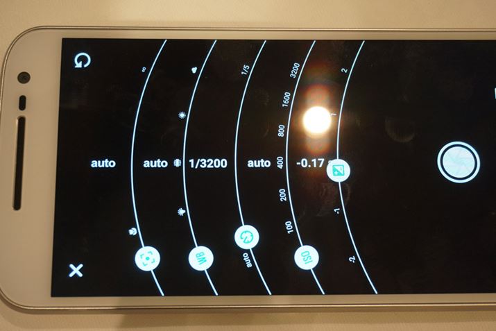 メインカメラのマニュアル撮影モードでは、露出がEV+2〜−2、ISO感度が100〜3200、シャッター速度が1/3200〜1/5秒の範囲で調節が可能。このほかホワイトバランスと、マニュアルフォーカスも行える