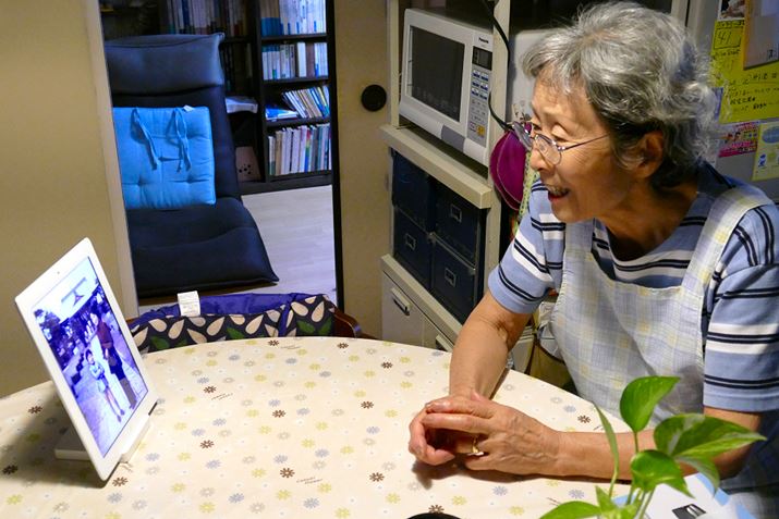 取り込んだ写真をiPadのスライドショーで鑑賞。結婚式当日の写真を数十年ぶりに見る2人