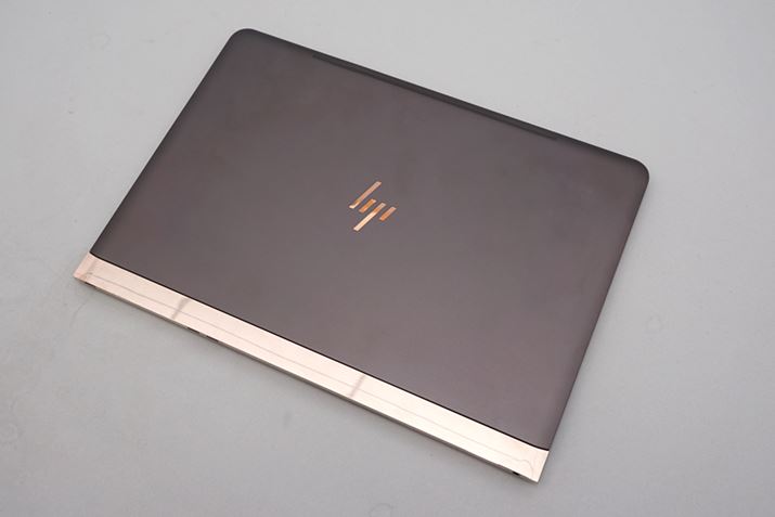 本体のベースカラーはダークグレーを採用。HPのロゴとヒンジ部分に、鏡面仕上げのブロンズゴールドをあしらっている。メタリックカラーは、樹脂に蒸着したのではなく塗装仕上げとなっており、輝きが非常に美しい
