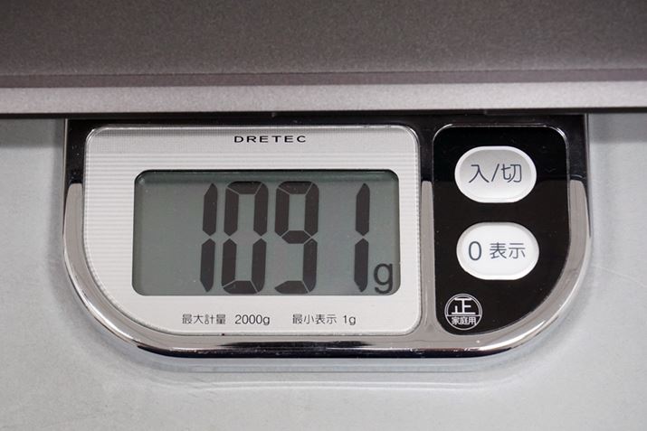 重さを計測してみたところ、カタログスペックよりも若干軽い1.091kgだった。本体の薄さからか、手に持った感じはさらに軽く感じる
