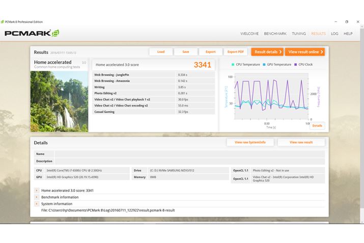 パソコンの総合性能を測定するFuturemarkの「PCMark 8」(Home accelerated)のスコア。モバイルPCでスコア3000オーバーはかなり優秀だ