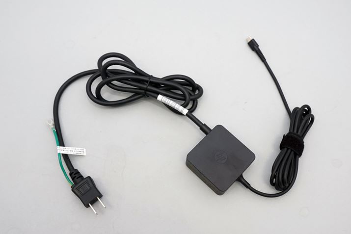 付属のACアダプター。USB Type-C側のケーブルは柔らかくて取り回ししやすいが、コンセント側のケーブルが太くて硬く、取り回ししにくい