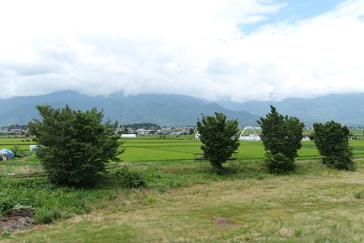 安曇野工場は、3000メートル級の山が連なる北アルプスを眺められる風光明美な場所にある。取材日は雲が多く山並みは見られなかったが、晴れていれば北アルプスを眺められるという