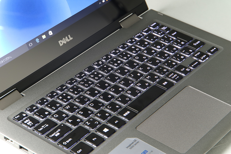 ディスプレイ部分が回転する2in1タイプのノートパソコンは、「ノートパソコン」「タブレット」「テント」「スタンド」という4つのスタイルで使えるのが特徴だ。ただ、実際のところは、テントとスタンドで利用する機会はそれほど多くないだろう。それよりも、クラムシェルの一般的なノートパソコンと使い勝手がほとんど変わらないのが魅力だ。日本マイクロソフトの「Surface」や東芝の「dynabook RX82/A」などのタブレット本体とキーボードが分離するタイプは、膝の上で使いにくかったり、ディスプレイの開閉角度が狭かったりする。それに対して、ディスプレイ部分が回転するInspiron 13 5000 2-in-1は、膝の上でも使いやすいし、ディスプレイ部分も180度まで開く。2in1に興味はあるが、通常のノートパソコンと同じように使いたいという人にはぴったりのモデルなのだ。