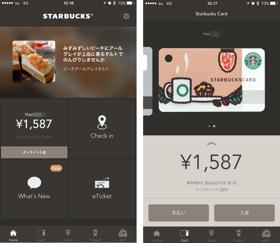 集めた複数のスタバカードを登録できるほか、支払いやチャージもできる。多機能でスタバ愛用者、必携のアプリだ