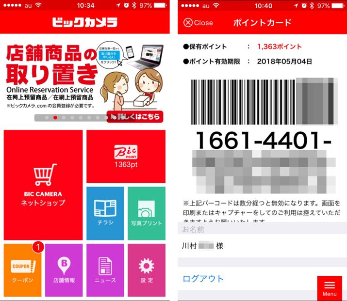 ポイントの照会や利用だけでなく、チラシやクーポン表示などビックカメラでの買い物に大いに役立つ「ビックカメラ」総合公式アプリ