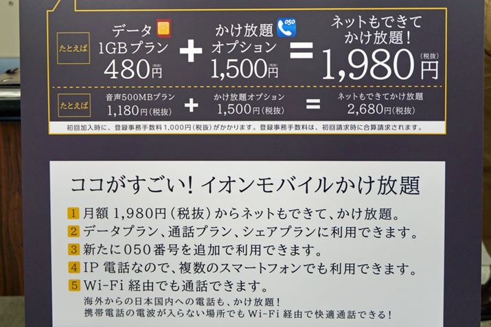 イオンモバイルSIMの新しいオプションサービス「050かけ放題サービス」。データ通信専用SIMカードでも利用できる