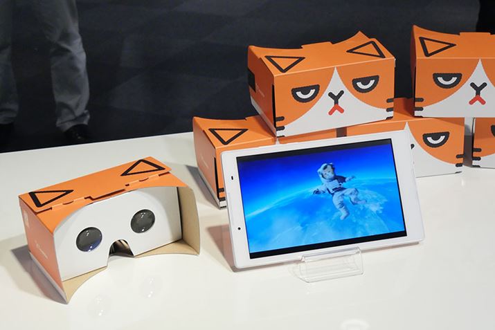「ふてニャンVRゴーグル」はグーグルのCardboardをベースにしたもの。ふてニャンと一緒に宇宙体験ができるオリジナルのVRコンテンツも用意される