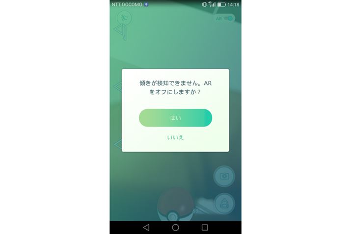 話題のポケモンGOは問題なく動作するが、傾きを検知するジャイロセンサーがないので、ARを使ってモンスターを捕獲することはできない