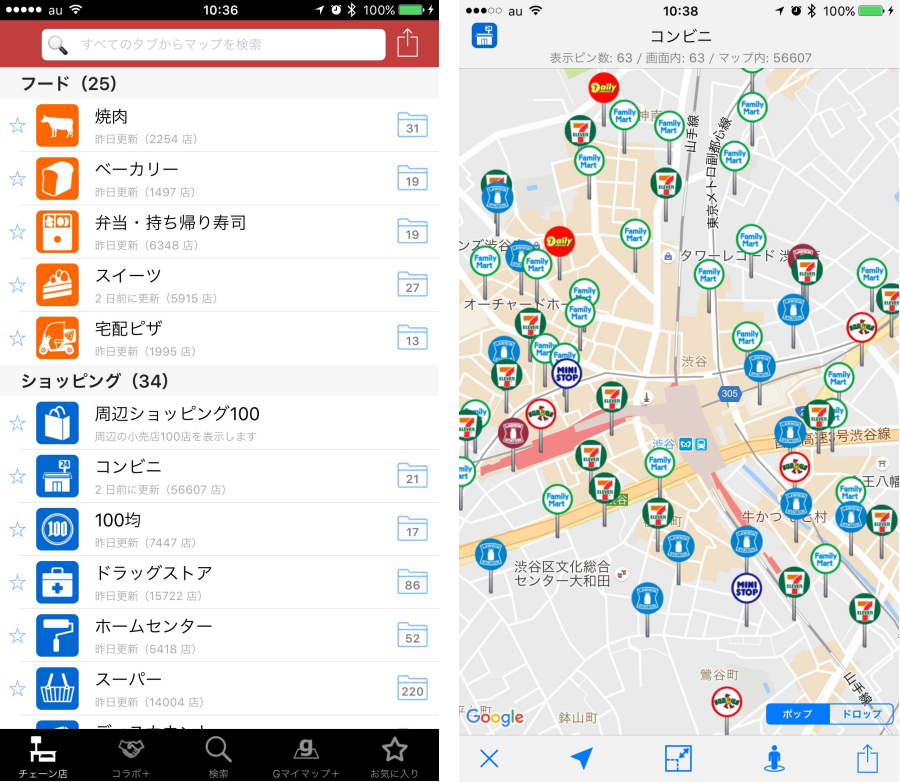 全国約2,000チェーンの店舗データが収録されており、飲食店やショッピング店、サービス・施設を探すのに便利