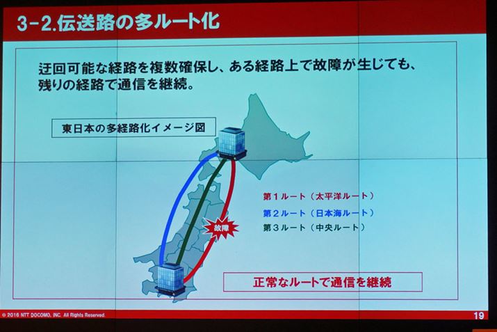 そんな災害対策のひとつが、重要施設やネットワークのさらなる分散化である。今回取材した「ネットワークオペレーションセンター」は、大阪にあるもうひとつの「西日本オペレーションセンター」とともに、NTTドコモの東西のネットワークやサービスを監視している。この東西のネットワークセンターは震災前から活用されていたが、どちらかの施設がダウンした場合には、即座にもう片方がバックアップとして機能するように、体制が見直されている。また、被災時の電源確保も、アクセスが困難になりやすい離島を中心に徐々に強化がなされている。