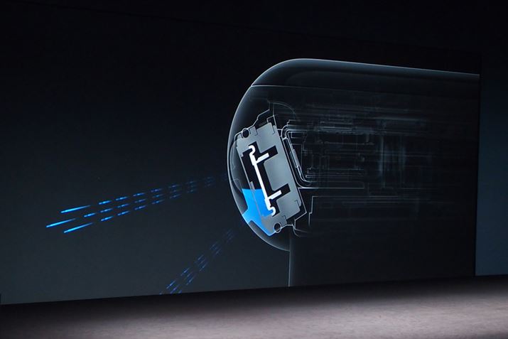 Apple Watch SERIES 2の一番の強化点は防水に対応したこと。初代モデルも高い防水性能を備えていたが、新モデルは装着したまま水泳ができるほど高い防水性能を実現している。各パーツに防水用のゴムパーツを取り付けたほか、密閉するこのできないスピーカーに関しては、中に入った水を音の振動を使って外に排出するスピーカーを開発した。水泳中の動きを正確に測定し、その情報をアクティビティアプリケーションに取り込めるように、700人のスイマーに協力してもらったという。スイミングといっても、プールと海では消費量などが異なることから、別々のワークアウトを用意するなど、こだわって作り込まれている。