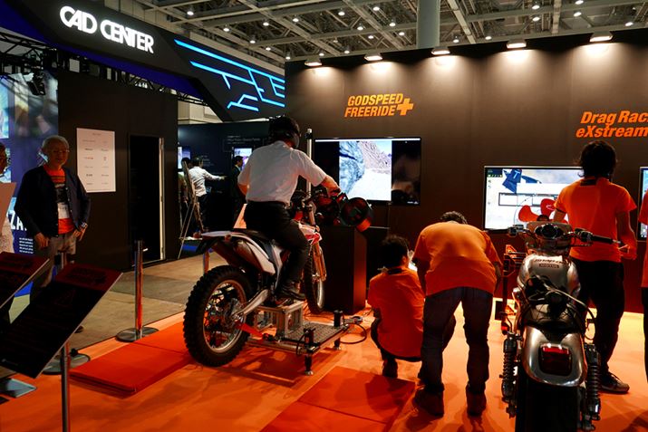 コンテンツ東京2016「先端コンテンツ技術展」で、プロトタイプが展示していた「GOODSPEED VR」。本物のバイクに跨って操作を行い、映像に応じて風を感じさせるファンも搭載。究極のVRゲームとして、また、危険を伴わないバーチャルトレーニングなど、応用が期待できる