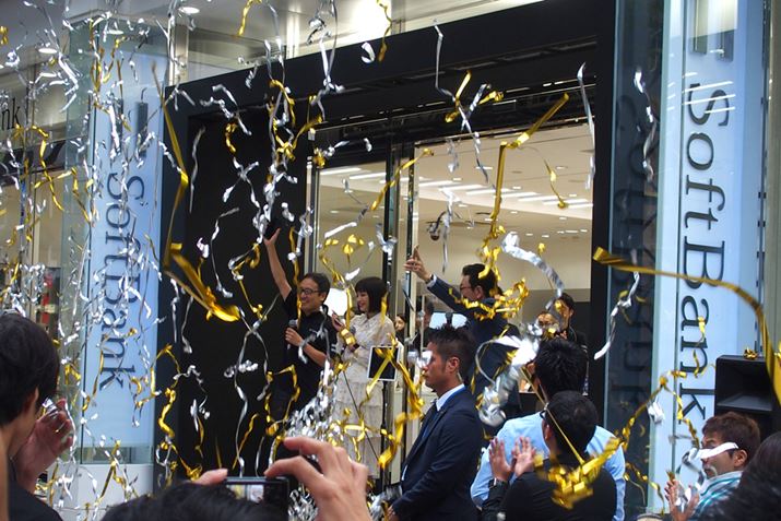 ソフトバンクは参道店で発売セレモニーを開催。同社の代表取締役社長兼CEOの宮内謙氏、ゲストとしてテレビCMに登場するフリーアナウンサーの古館伊知郎さん、女優の広瀬すずさんが登場した