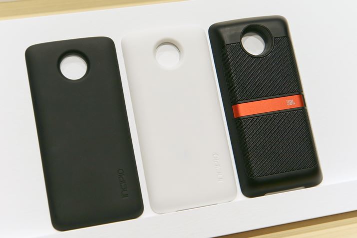 Moto Modsは、Moto Z/Z Playの機能を拡張できる専用アクセサリー。背面にマグネットで固定して利用する。「プロジェクターMods」、スピーカーの「コンサートMods」、バッテリーの「Incipio offGRIDTMパワーパック」、ワイヤレス充電対応のIncipio offGRIDTMパワーパック、着せ替えパネルの「スタイルキャップ」、光学10倍ズームカメラの「ハッセルブラッドTRUEZOOM」など8種類をラインアップ。プロジェクターやスピーカーには、バッテリーが内蔵されており、スマホ本体のバッテリー消費を抑えられる仕組みだ。ハッセルブラッドTRUEZOOMは、F3.5〜6.5の35mm判換算で25mm〜250mmのズームレンズを搭載。有効1200万画素の1/2.3インチのCMOSセンサーを備える。直販価格は28,800円(税別)で、ハッセルブラッドのカメラとしてはお得なのもポイントだ。
