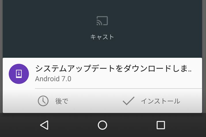 バージョンアップの準備が整うと、通知メニューに表示される。1GB強のファイルをダウンロードするのでWi-Fi環境は必須だ