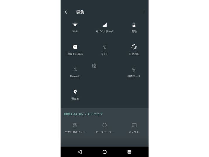 通知メニューにあるクイック設定の項目はカスタマイズ機能が標準で搭載された。APIが公開されているので項目の追加にも対応している