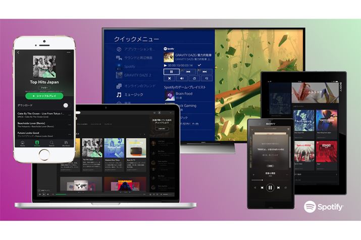 さまざまなデバイスに対応しているSpotify。スマホやタブレットやPCだけでなく、家庭用ゲーム機のPlayStation4/3もサポートしている