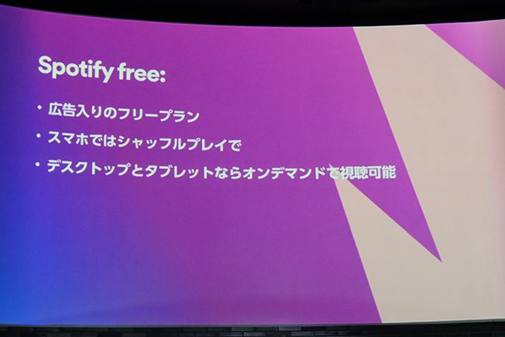 サービスプランは、広告が入る無料プランの「Spotify free」と、すべての機能が使用できる月額980円(税込)の有料プラン「Spotify Premium」の2つから選べる。
