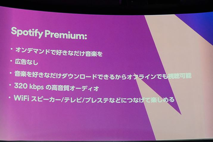 いっぽう、有料プランのSpotify Premiumでは、広告の表示がなく、オンデマンド再生の制限もない。加えて320kbpsの高ビットレートで音源を再生可能。さらに楽曲のダウンロードにも対応しており、オフラインでも音楽再生を楽しめる。そのほか、選曲のみPCの大画面で行い、再生はスマートフォンで受け持つという連携も可能だ。ほかにもワイヤレス再生「Spotify Connect」に対応したデバイスをコントロールし、配信音源をデバイス側で再生することもできる。
